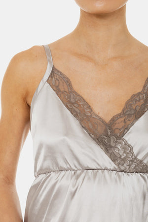 Сатенена нощница за бременни и кърмещи - сребриста