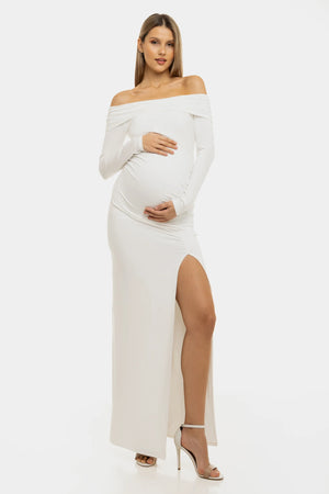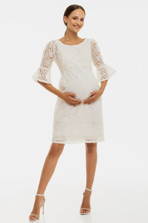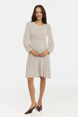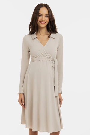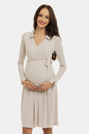 Ефирна рокля за бременни и кърмачки с прехвърляне - бежова