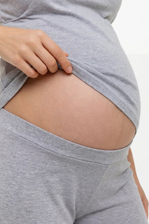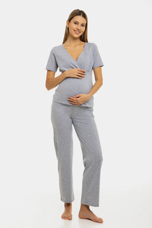 Памучна пижама за бременни и кърмещи - сива
