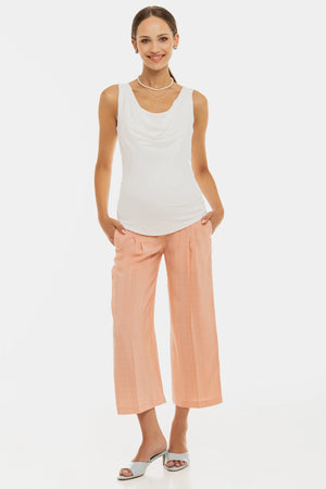Разкроен ⅞-ми панталон с плохи за бременни - праскова
