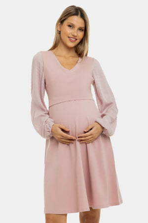 Рокля за бременни и кърмещи с елементи с точки - пепел от рози