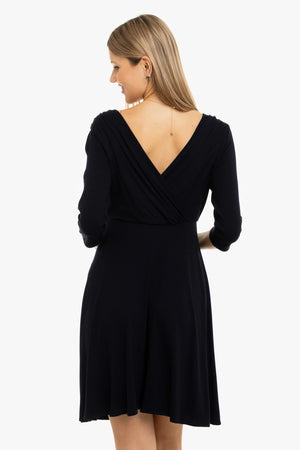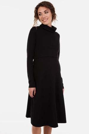 Разкроена рокля за бременни и кърмещи с поло яка - черна
