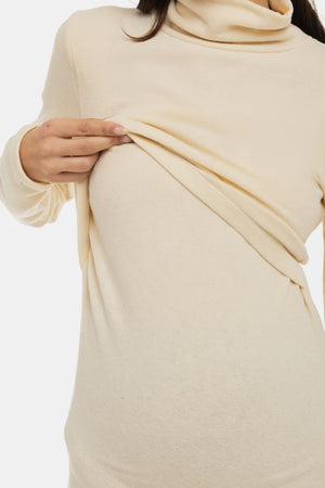 Пaмучен пуловер за бременни и кърмещи - екрю