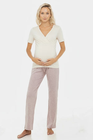 Комплект памучна пижама за бременни и кърмещи - Feathers