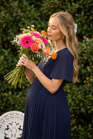 Тъмносиня рипсена рокля за бременни и кърмещи