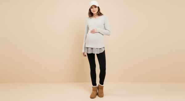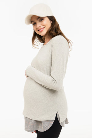 3 в 1 Ватиран суитшърт за бебеносене и бременни - бежов