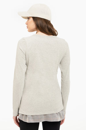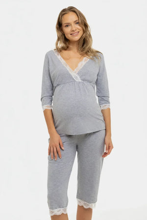Памучна нощница за бременни и кърмещи със ⅞-ми ръкави - сива