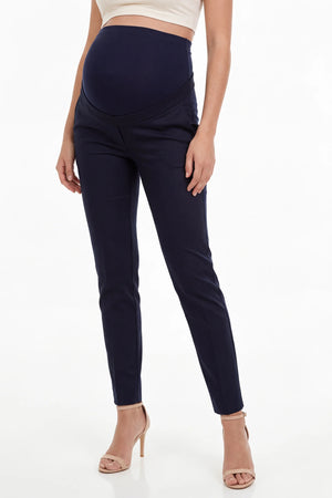 Панталон с плохи за бременни от фин жоржет - тъмносин
