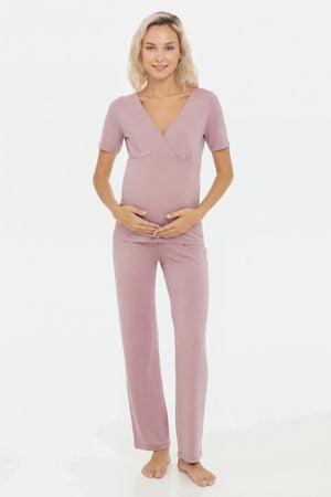 Памучна пижама за бременни и кърмещи - пепел от рози