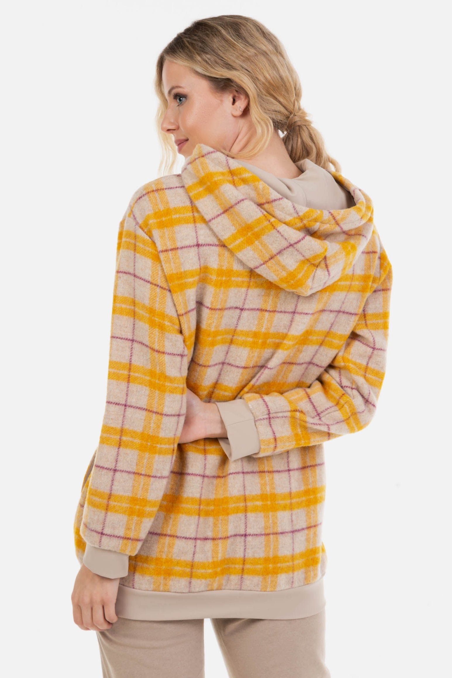 - Суитшъртът е изработен от плътна карирана материя