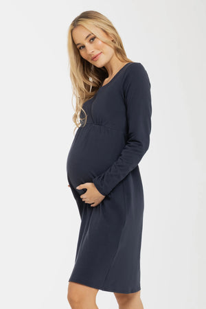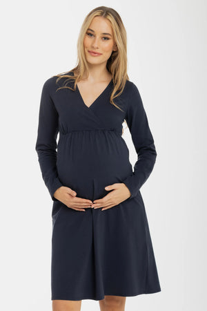 Памучна нощница за бременни и кърмещи - тъмносиня