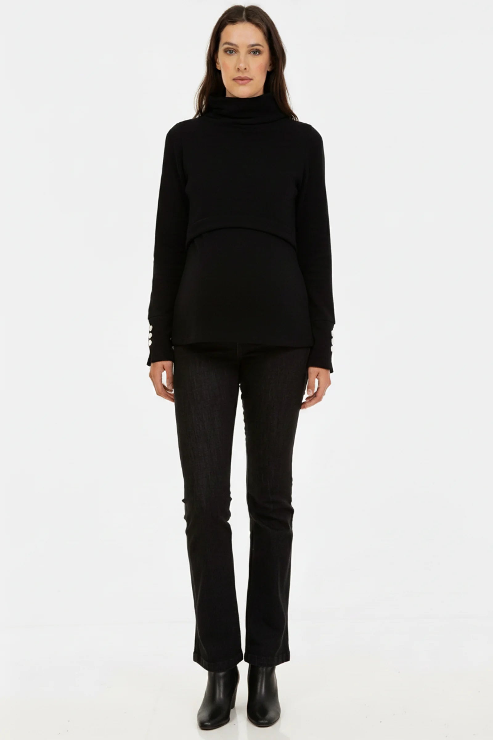 Черен пуловер с поло яка за бременни и кърмещи