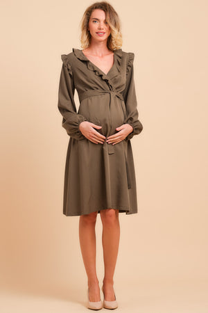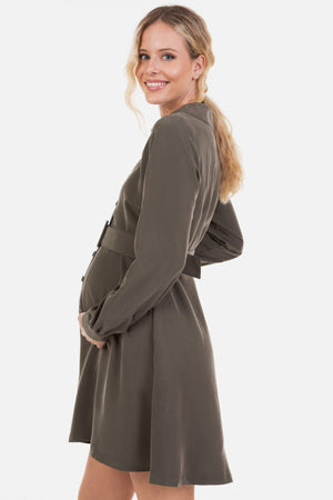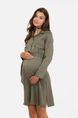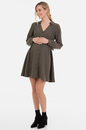 Рокля за бременни и кърмещи с яка - каки