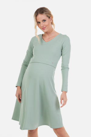 Ефирна рокля за бременни и кърмещи - зелена