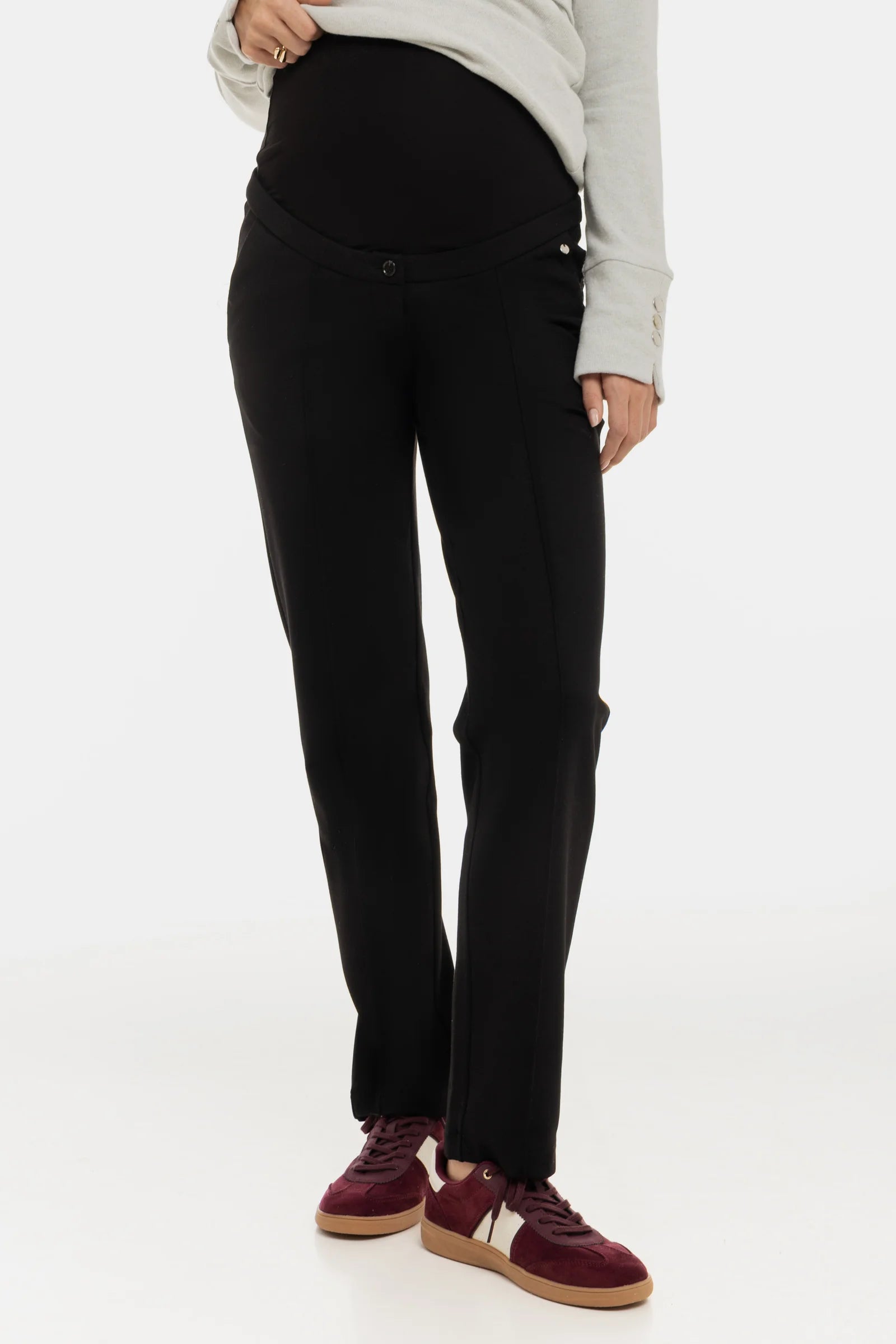 Панталон за бременни от плътно трико в тъмносиньо - осигурява удобство във всеки етап от бременността.