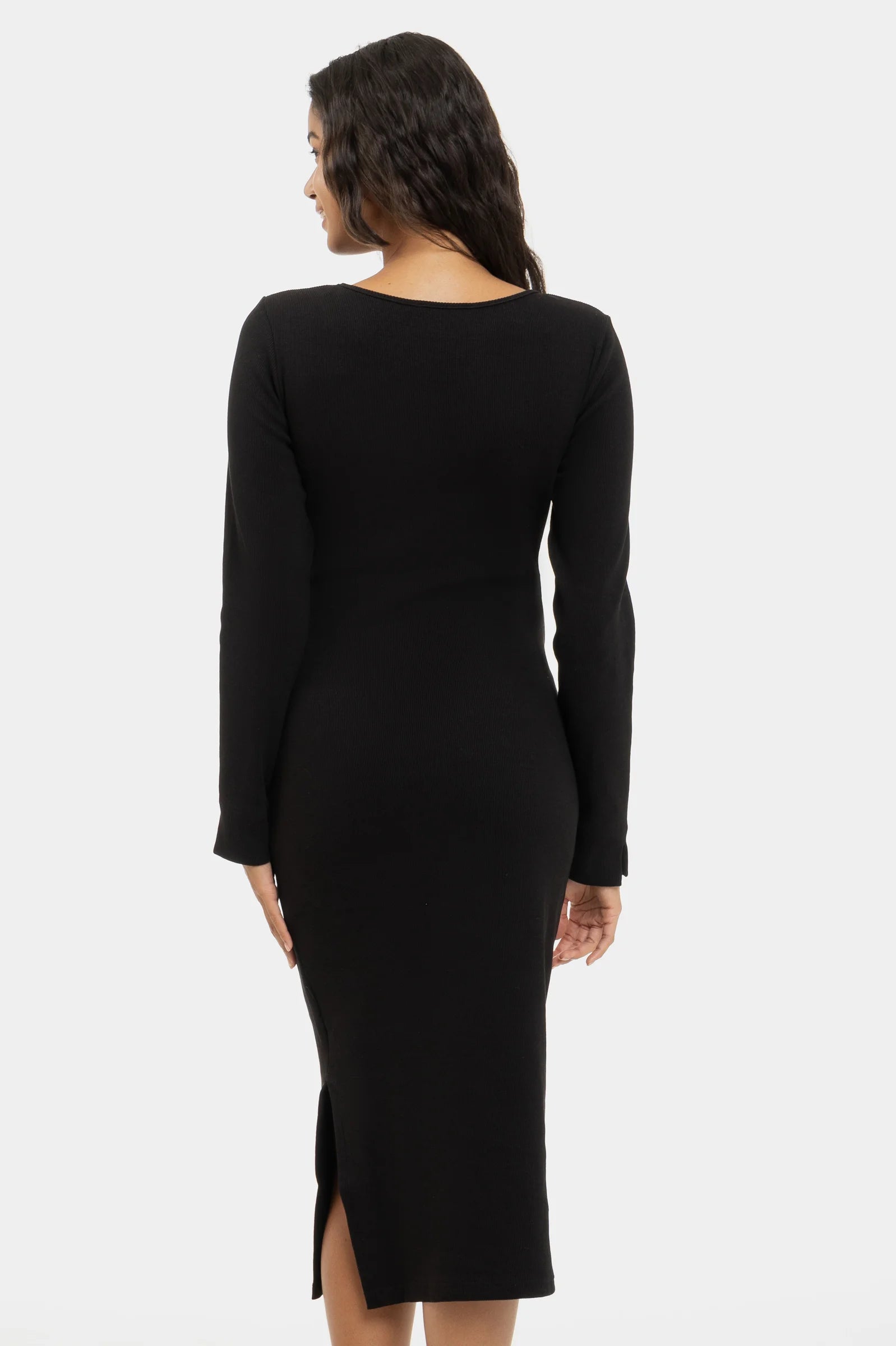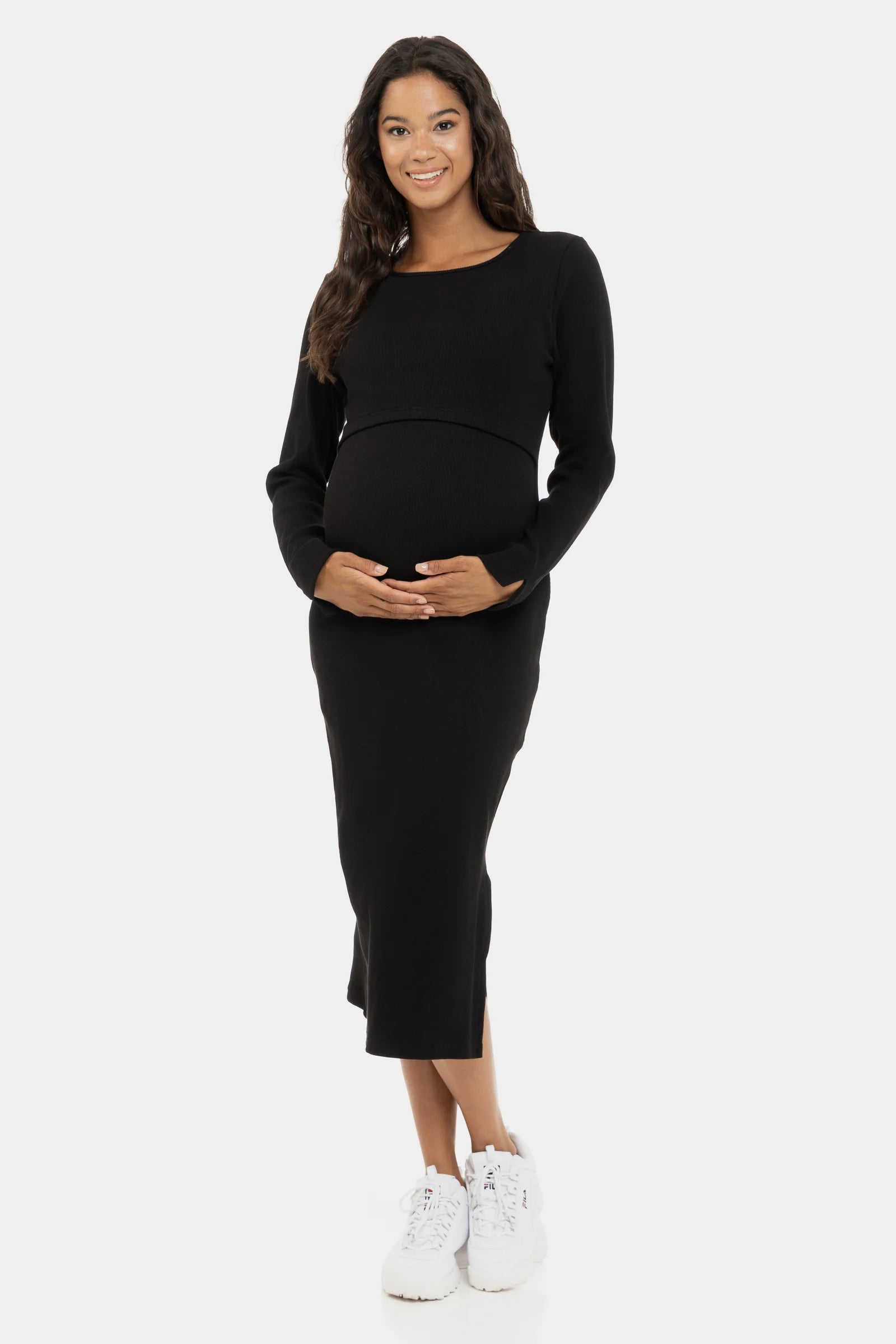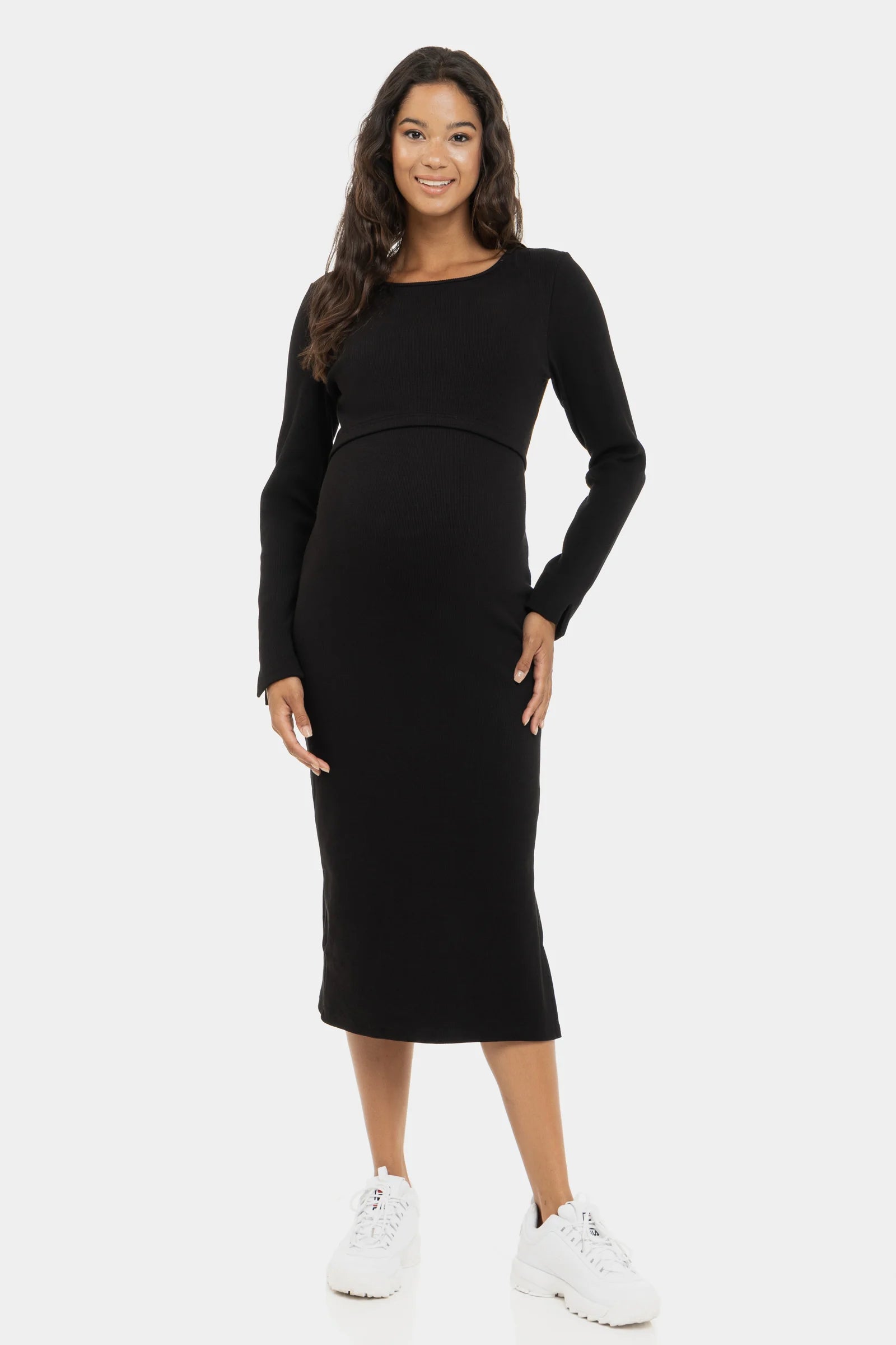 Рипсена памучна рокля за бременни и кърмещи - черна