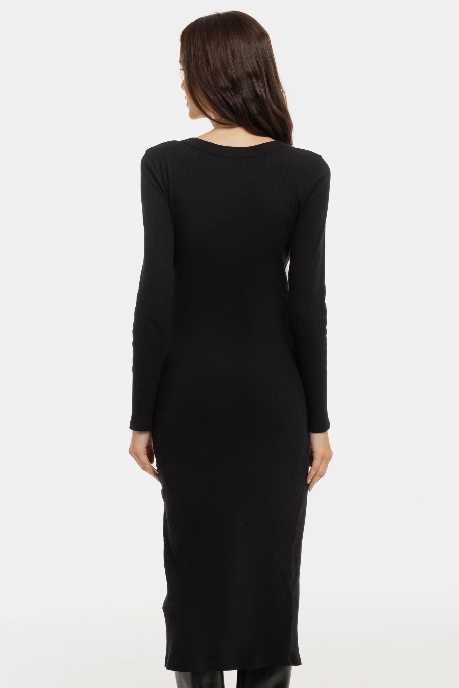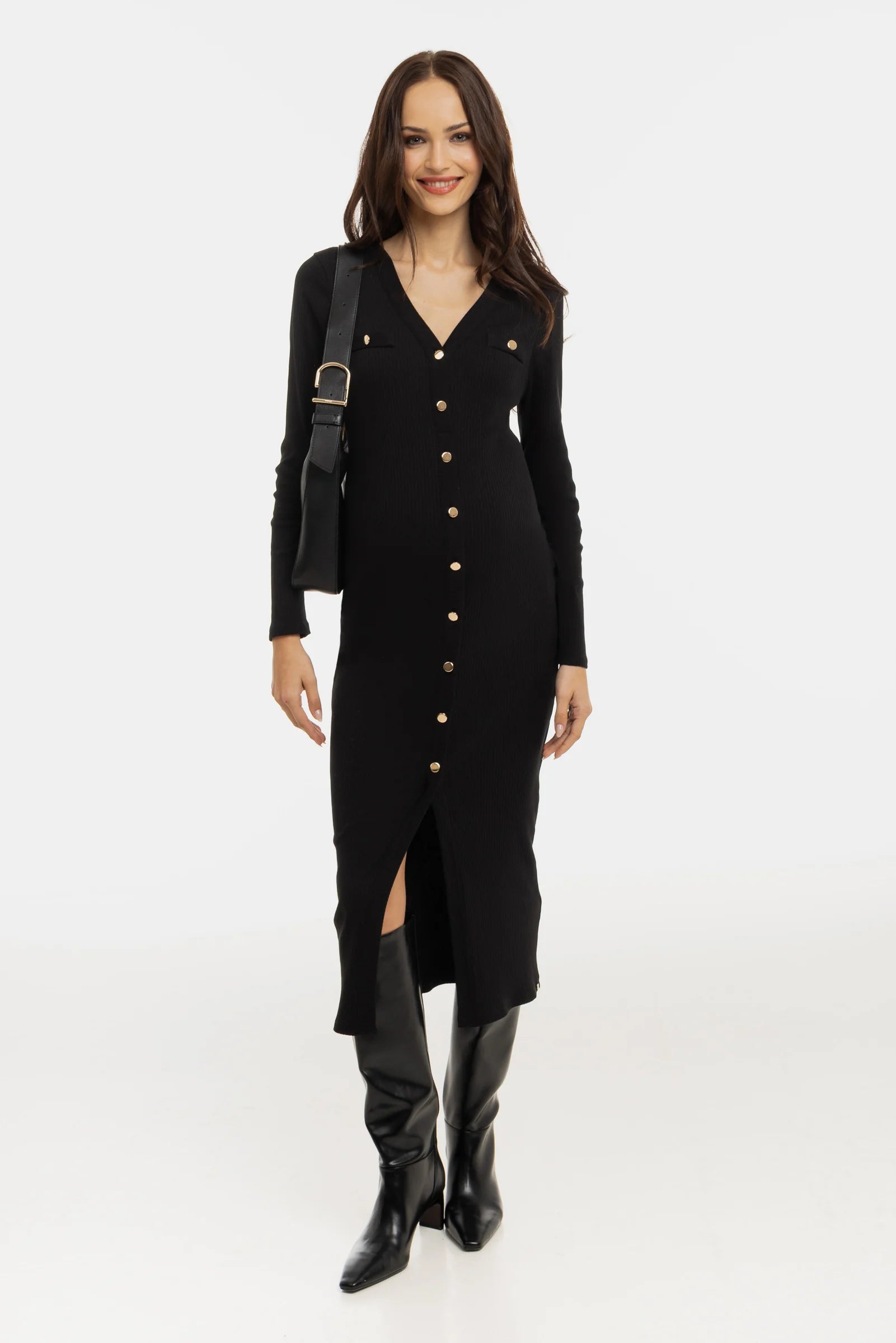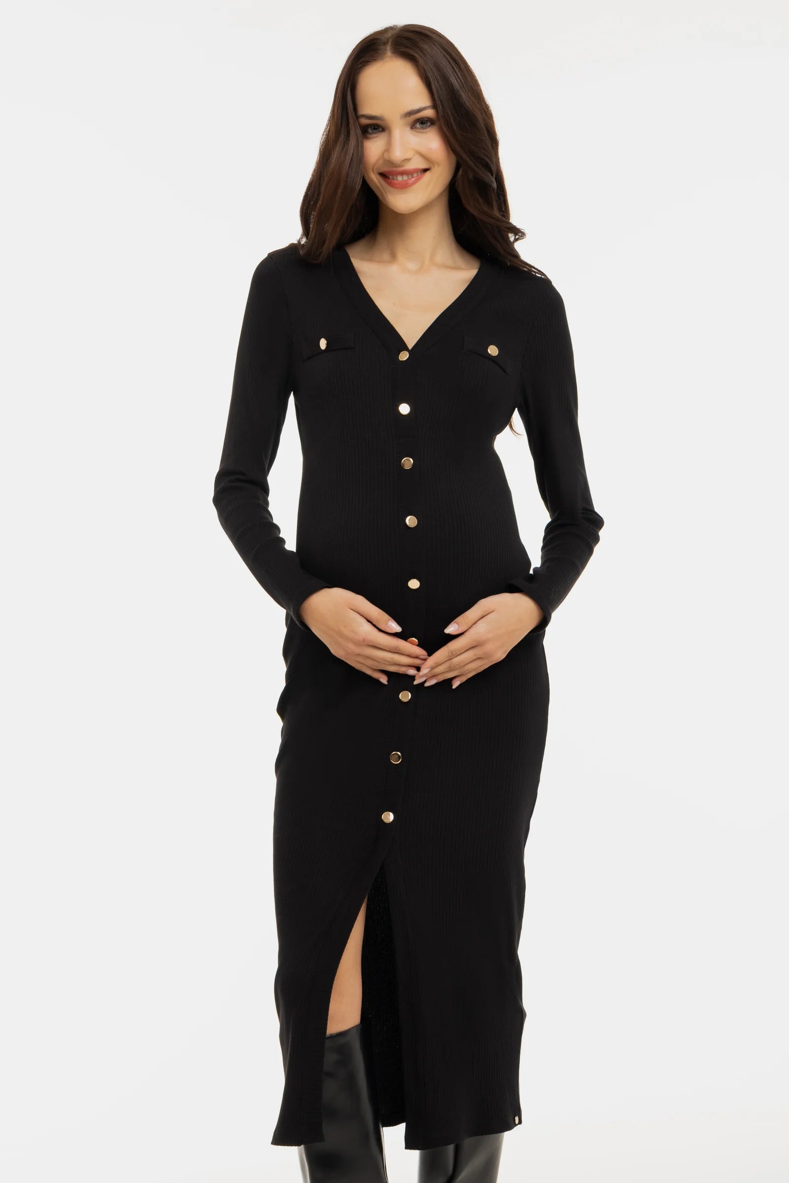 Памучна рипсена рокля за бременни и кърмещи - черна