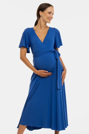 Дълга разкроена рокля за бременни и кърмещи - синя