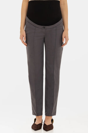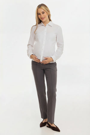 Офис панталон за бременни от вълнена смес - графит