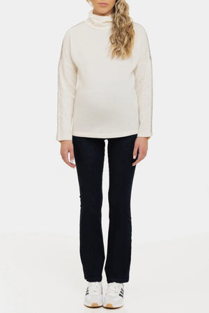 Разкроен еластичен панталон с плохи за бременни - тъмносин