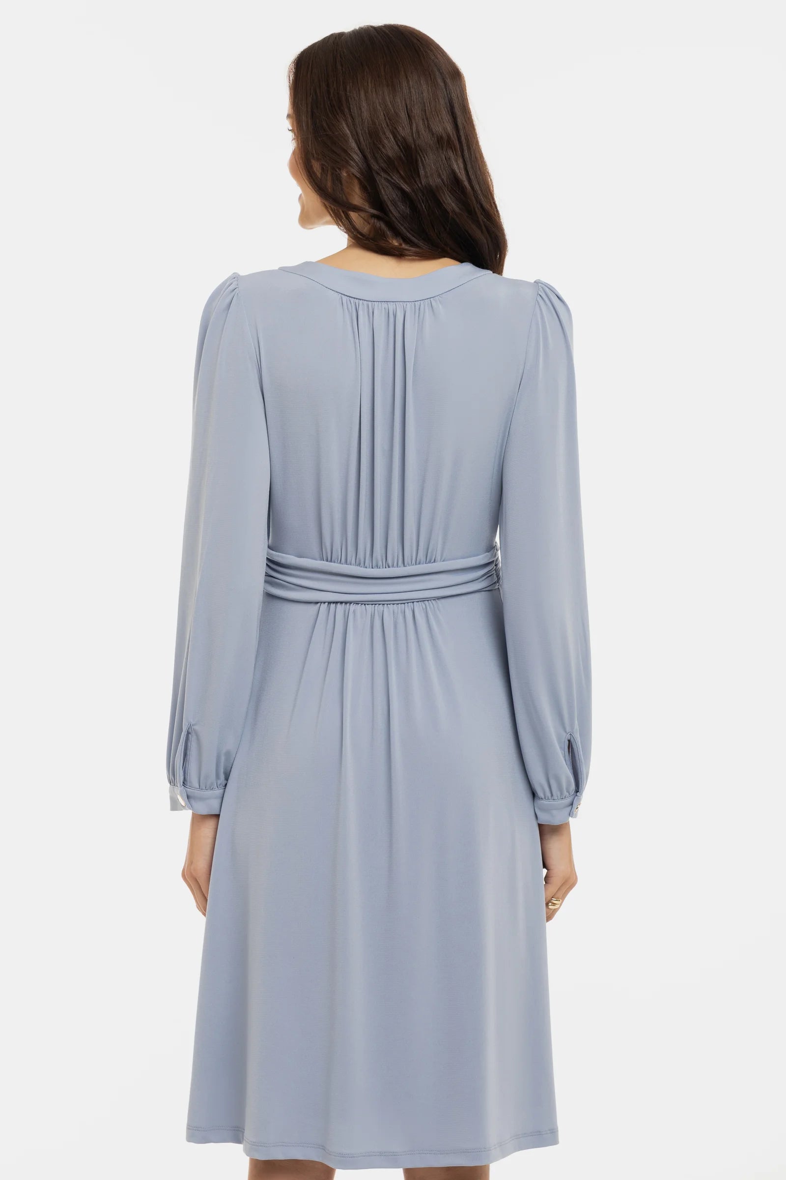 Създадена за празничните моменти, тази рокля за бременни комбинира комфорт и изисканост с красиви набори и мека падаща материя.