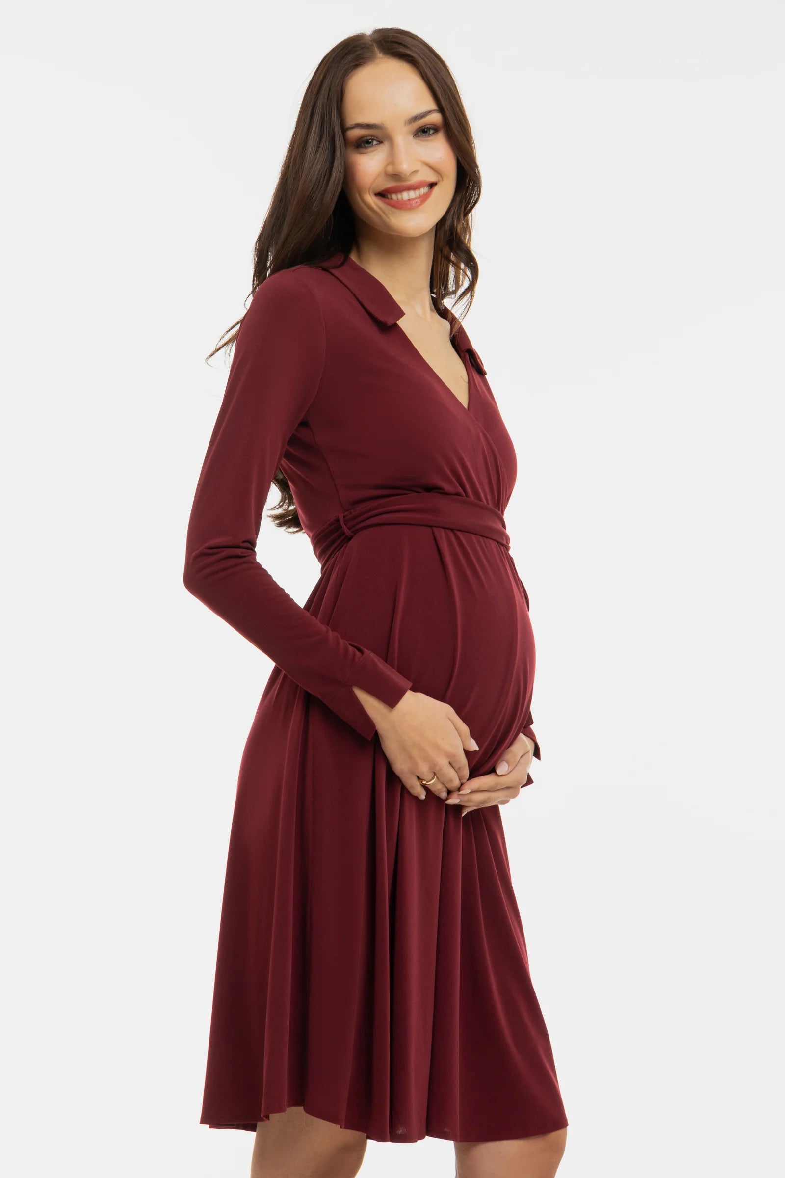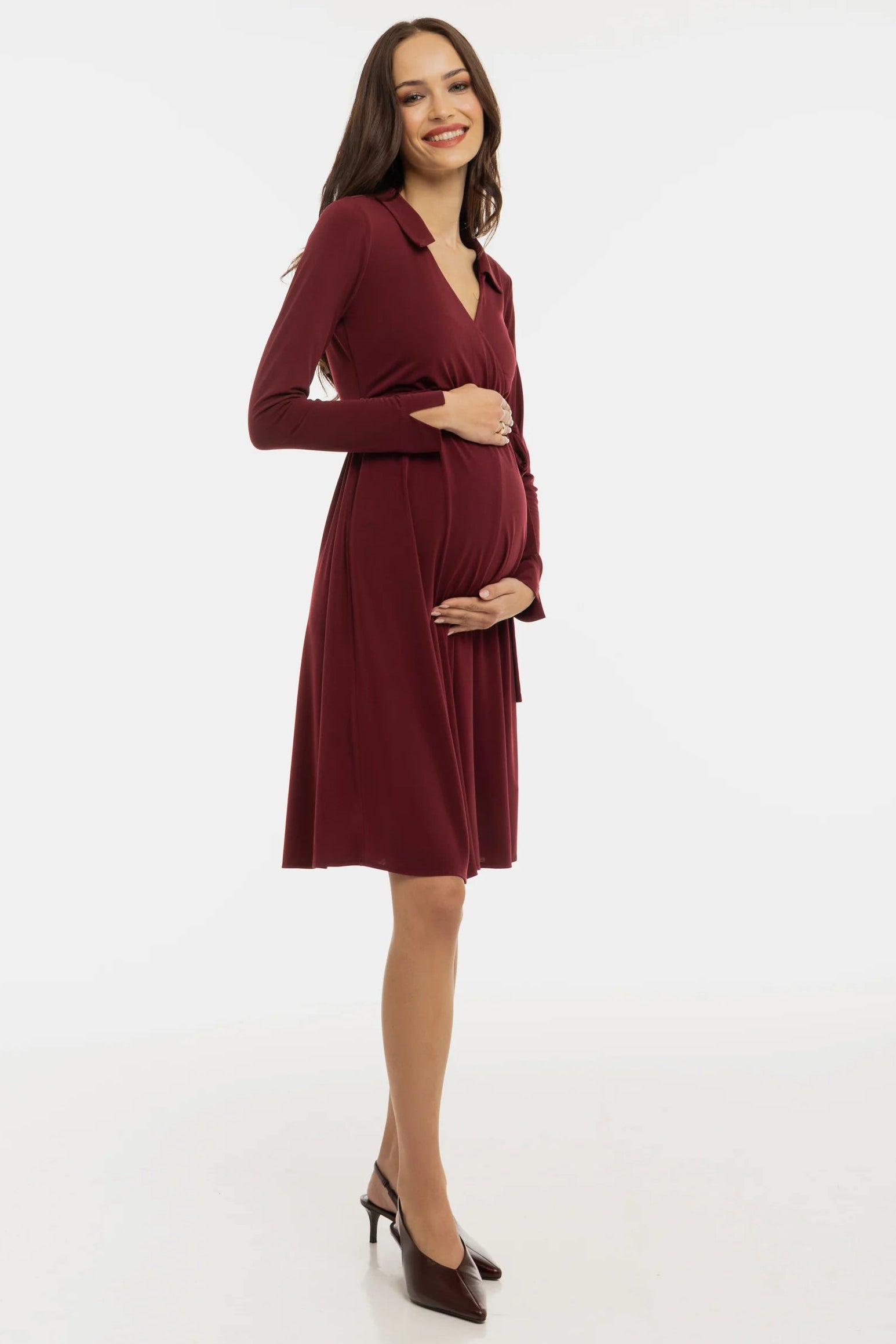 Ефирна рокля за бременни и кърмещи от галеща материя с прехвърлящ се дизайн, която подчертава силуета и осигурява лекота при движение - идеална за всеки специален повод!