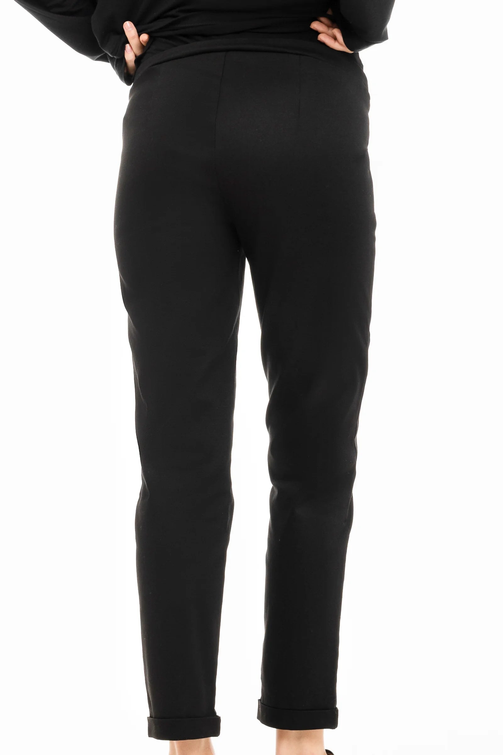 - Панталонът е изработен от еластична памучна материя в черно