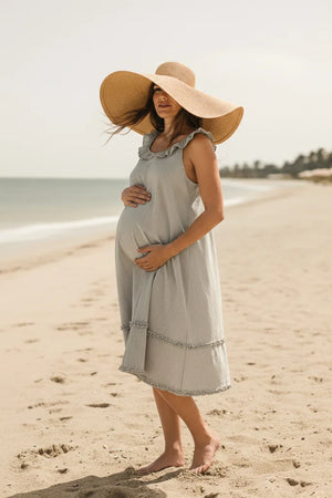 Памучна рокля за бременни с волани