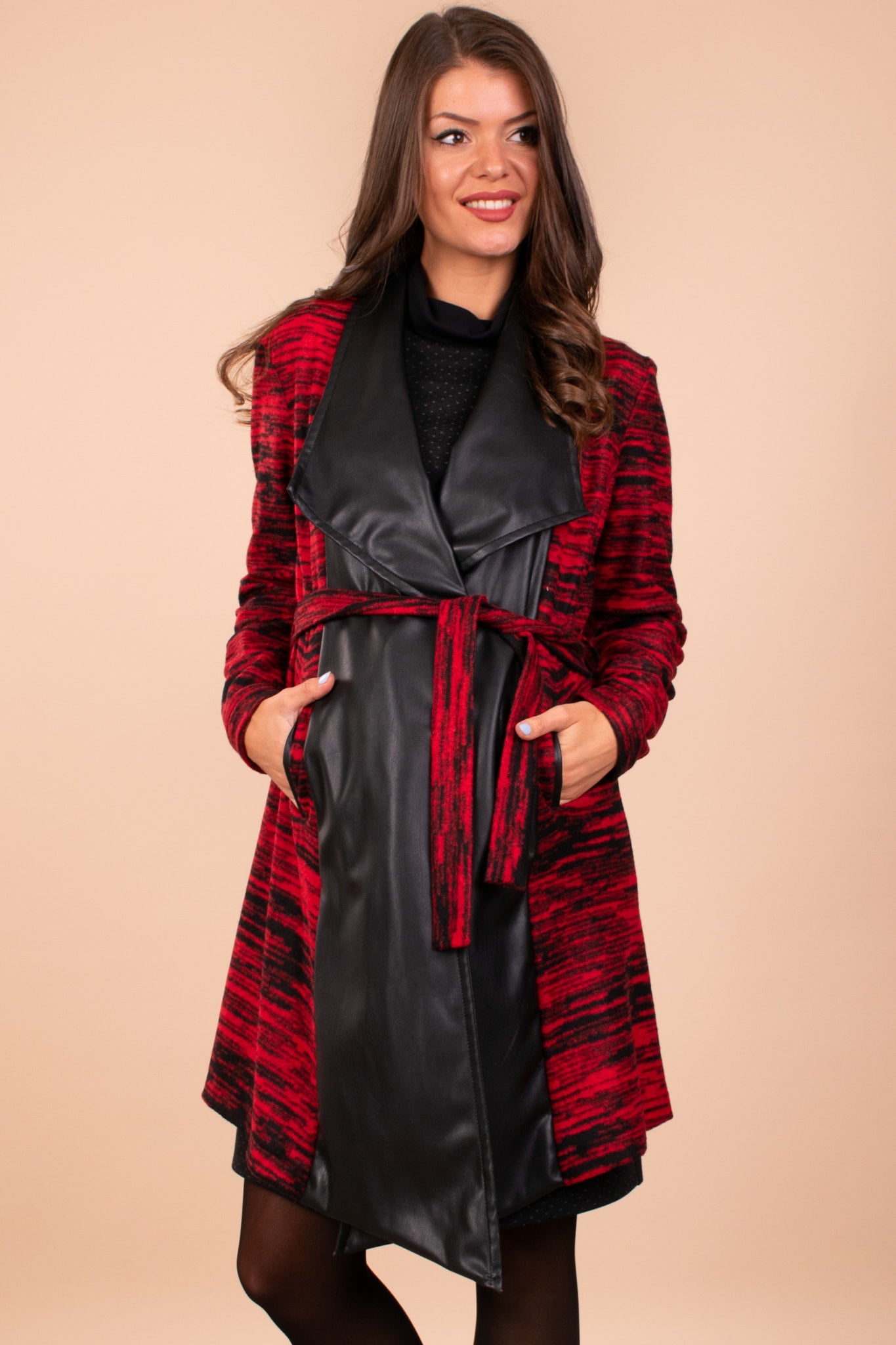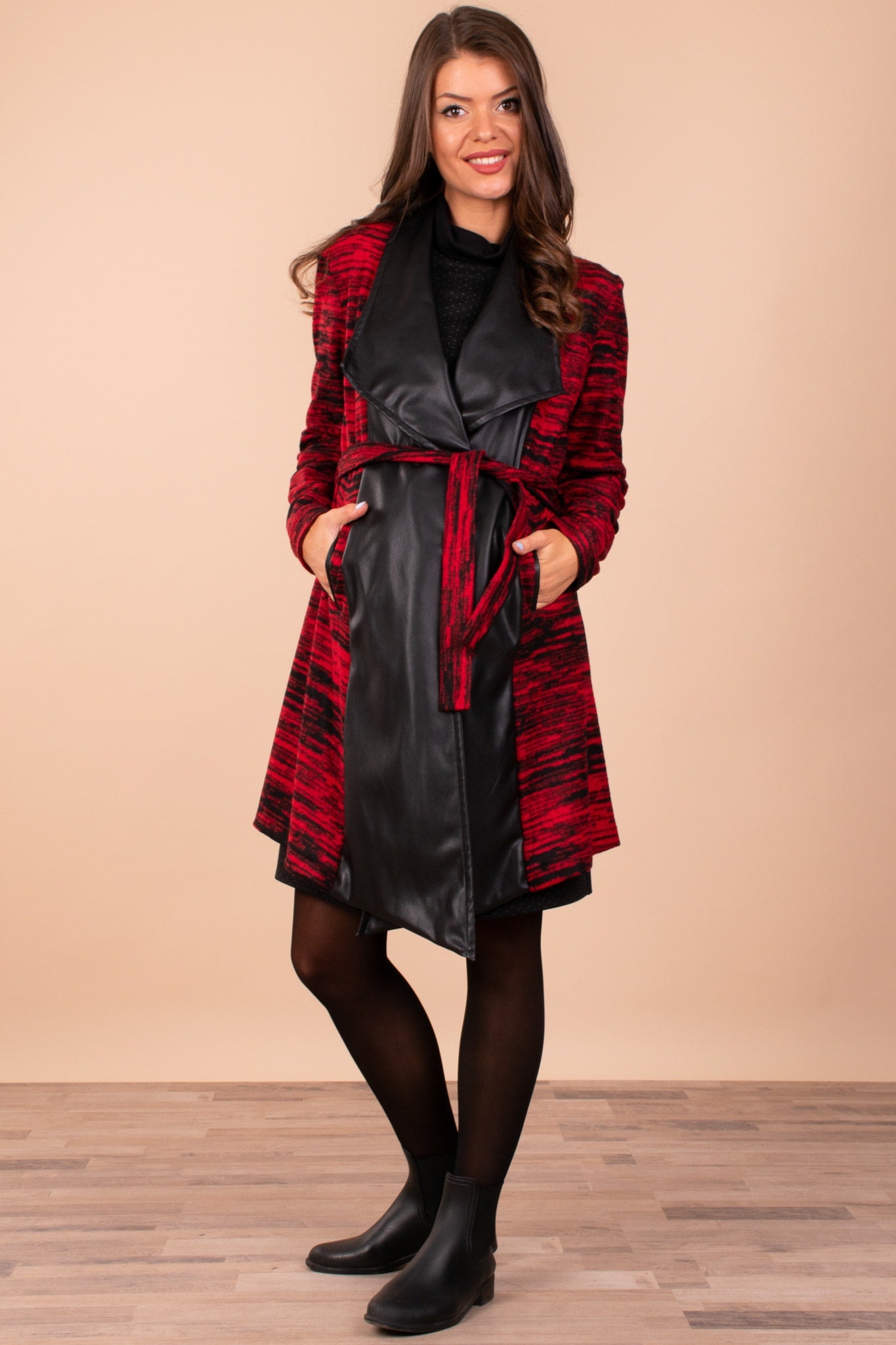 - Жилетка за бременни от материя с вълнено съдържание в червен меланж