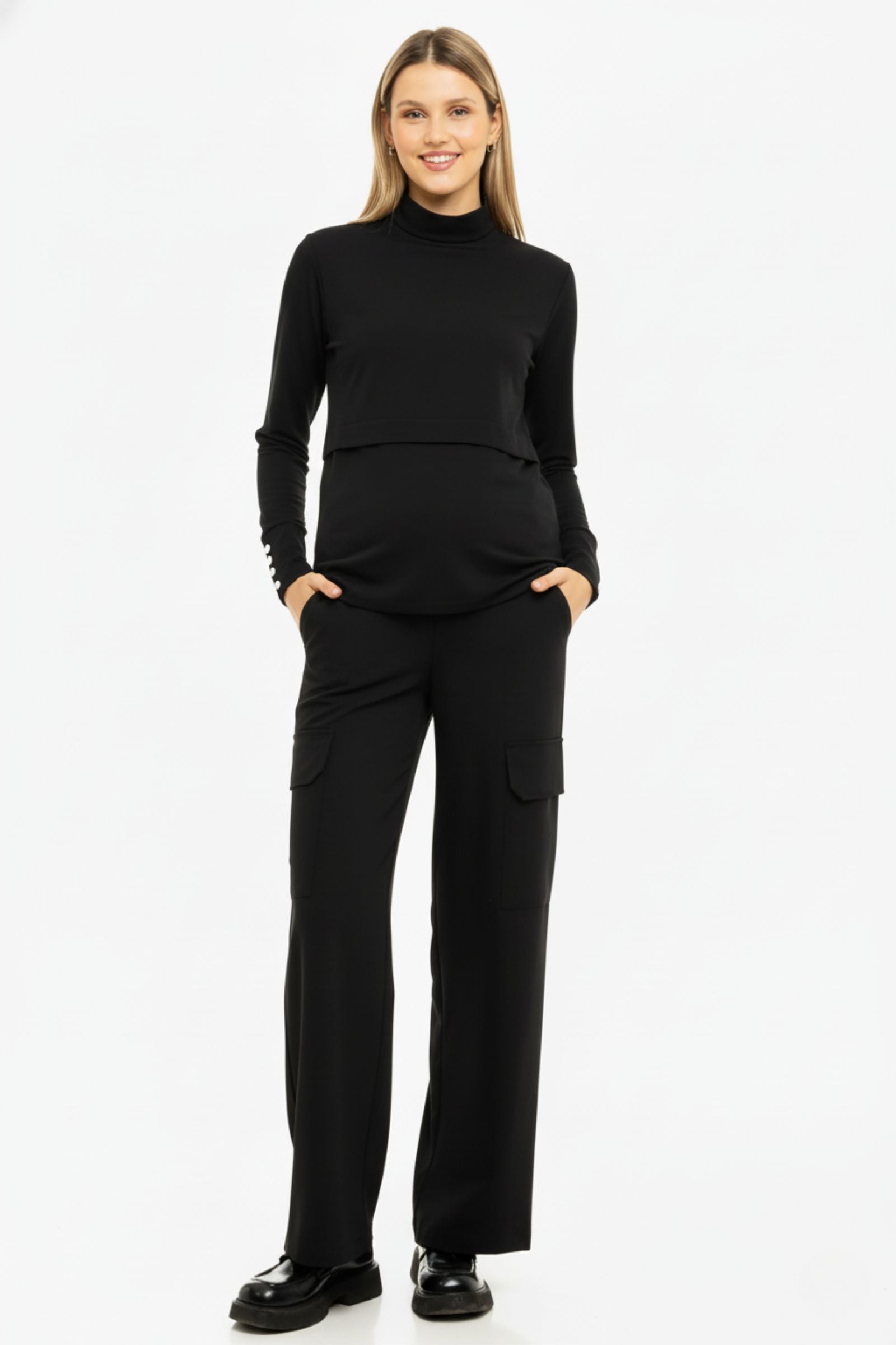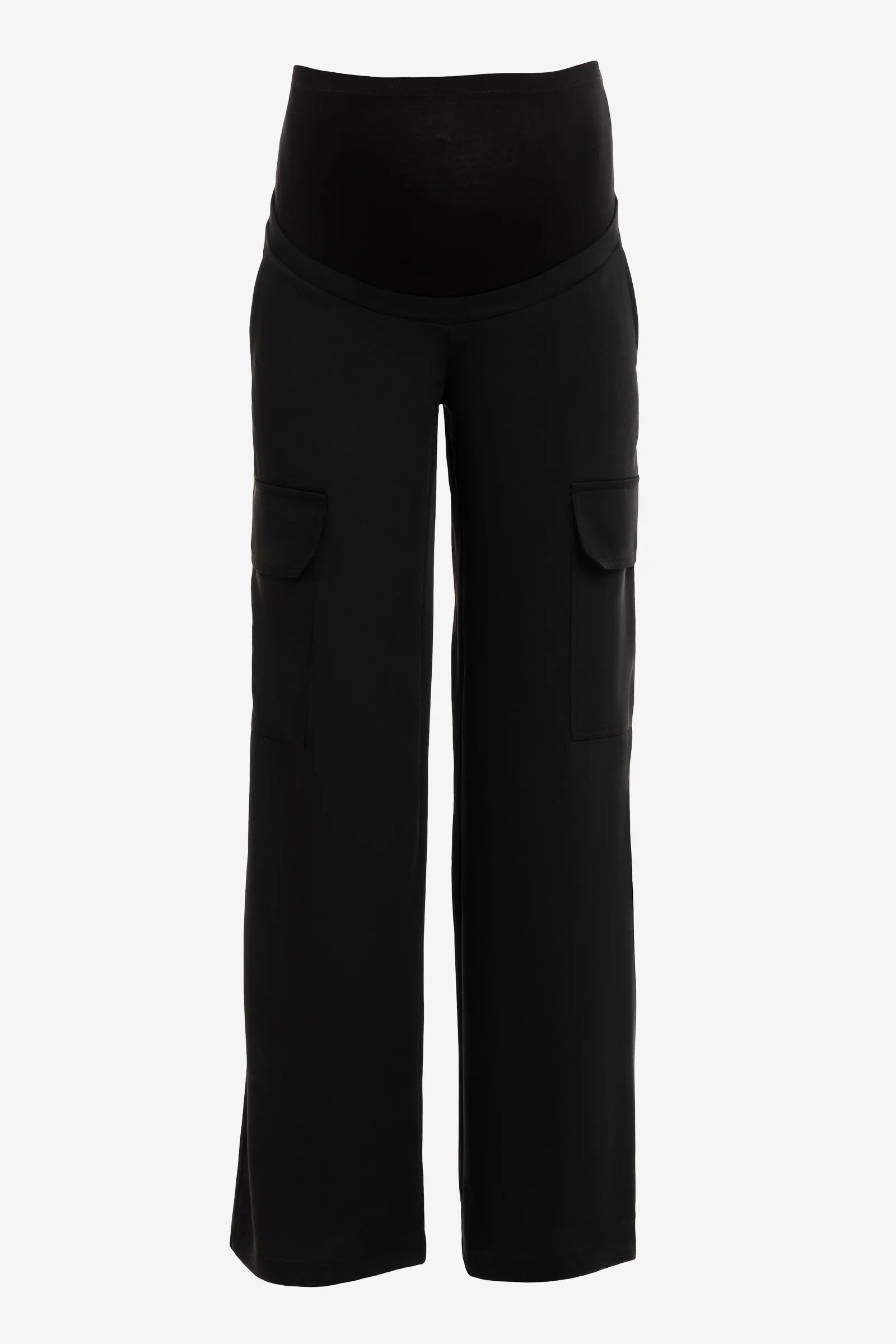 - Разкроен карго панталон за бременни от елегантно падаща материя в черно