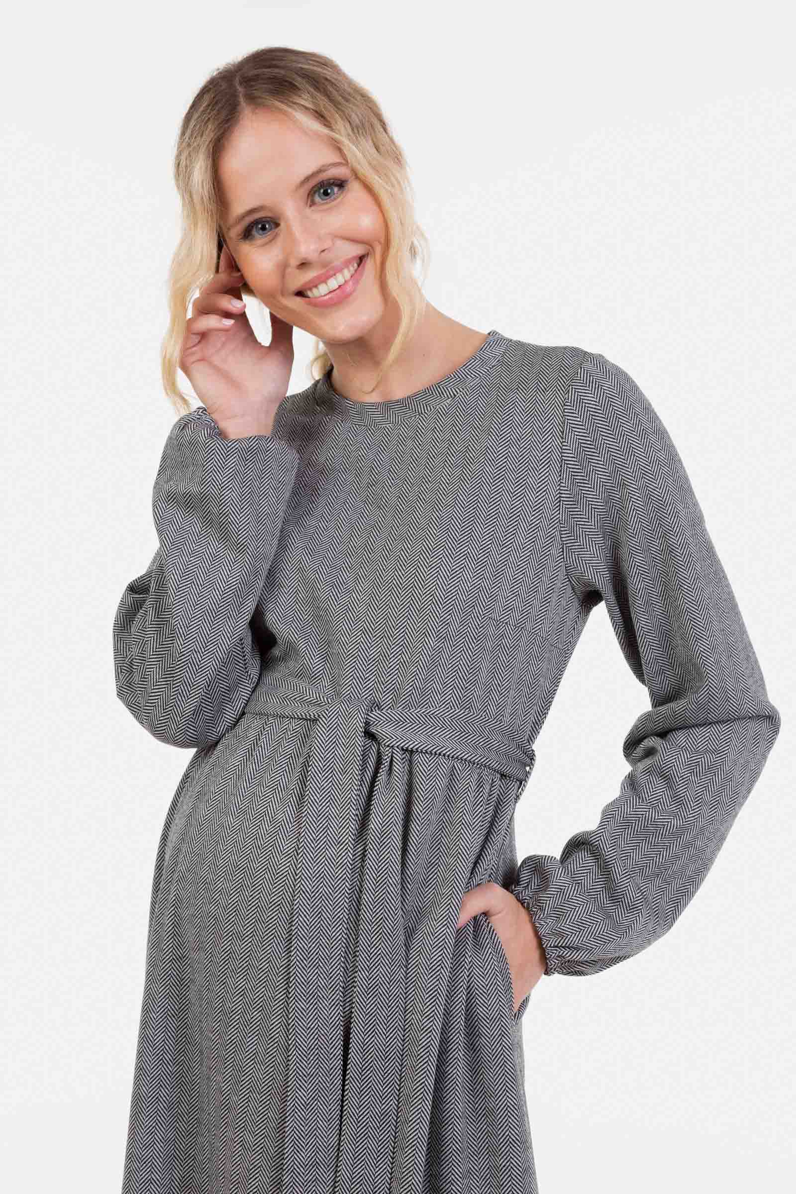 • Дълга рокля за бременни от плътна материя с десен на рибена кост