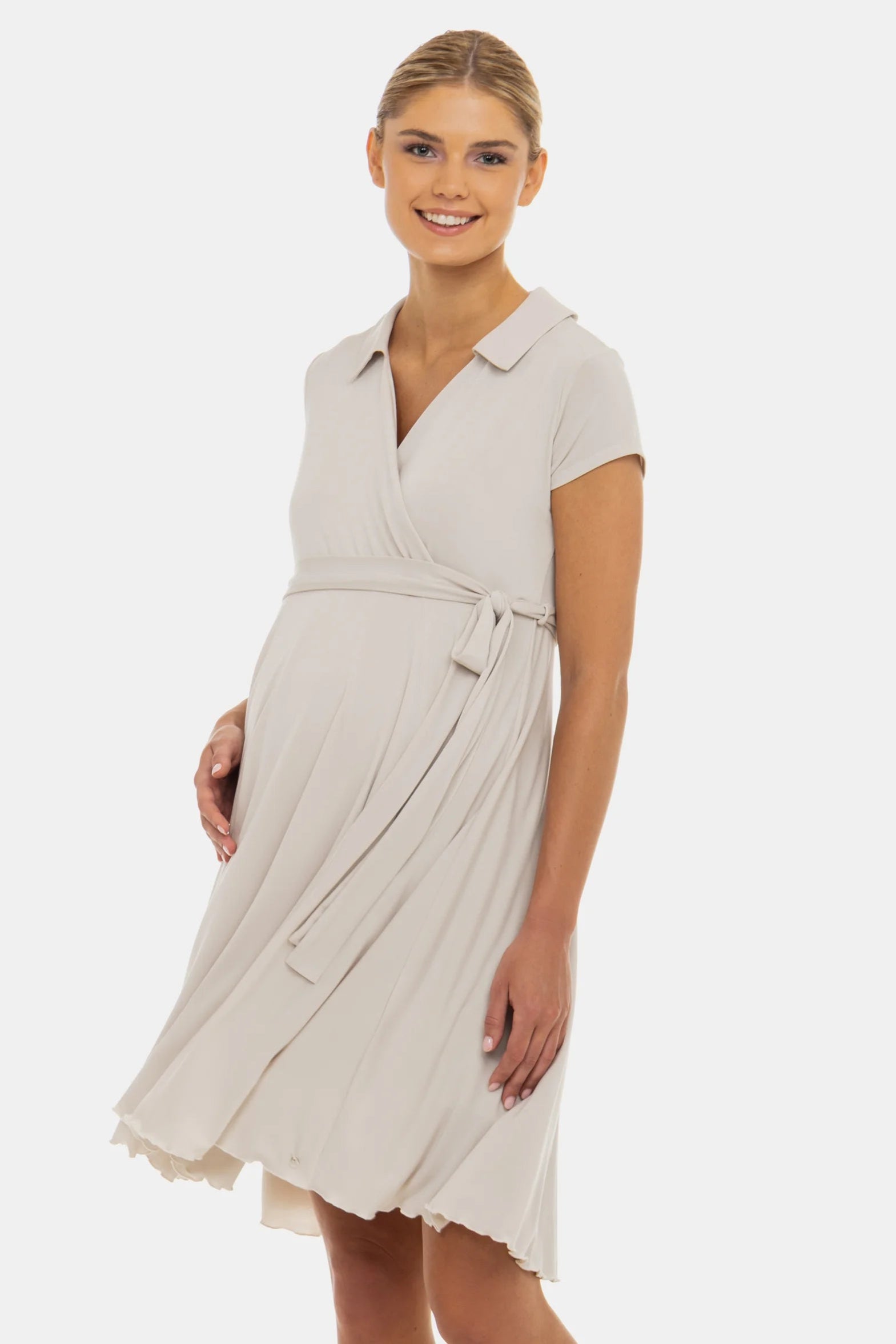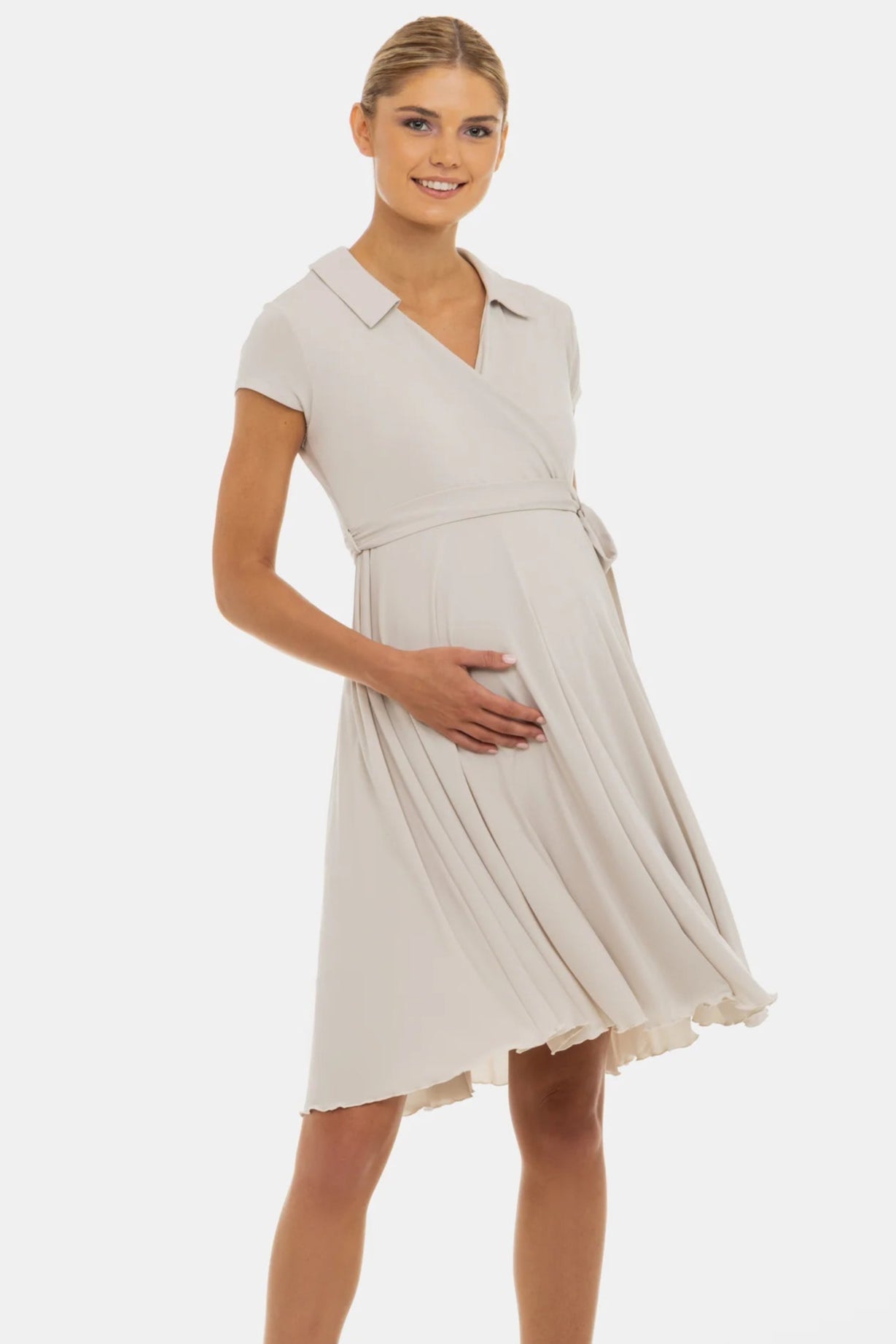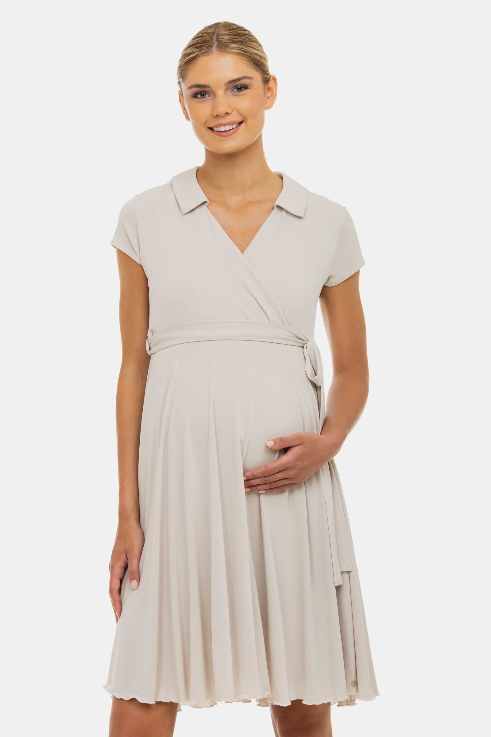 Ефирна рокля за бременни и кърмещи от галеща материя с прехвърлящ се дизайн, която подчертава силуета и осигурява лекота при движение – идеална за всеки специален повод!