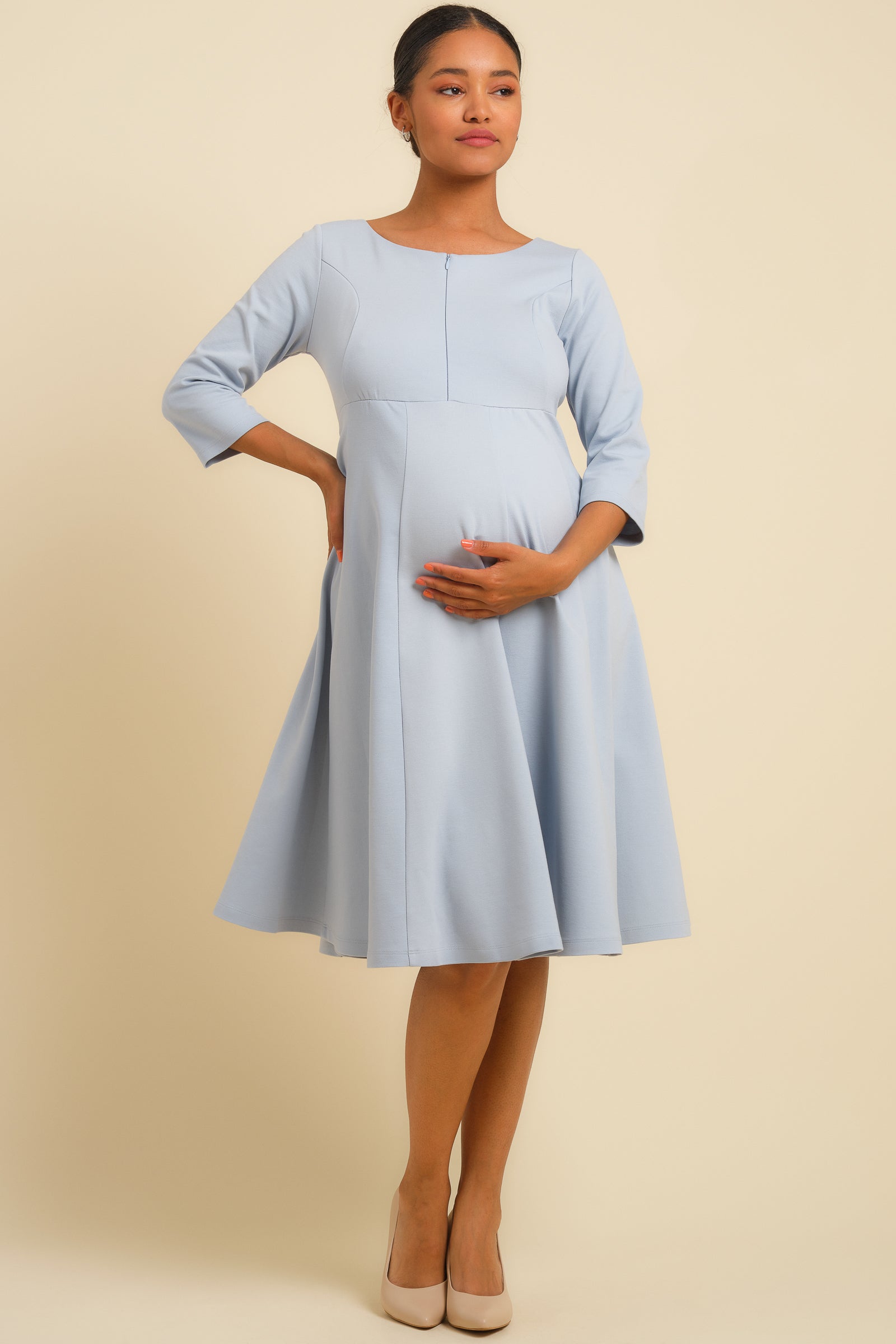 Вечерна рокля за бременни и кърмещи - светлосиня