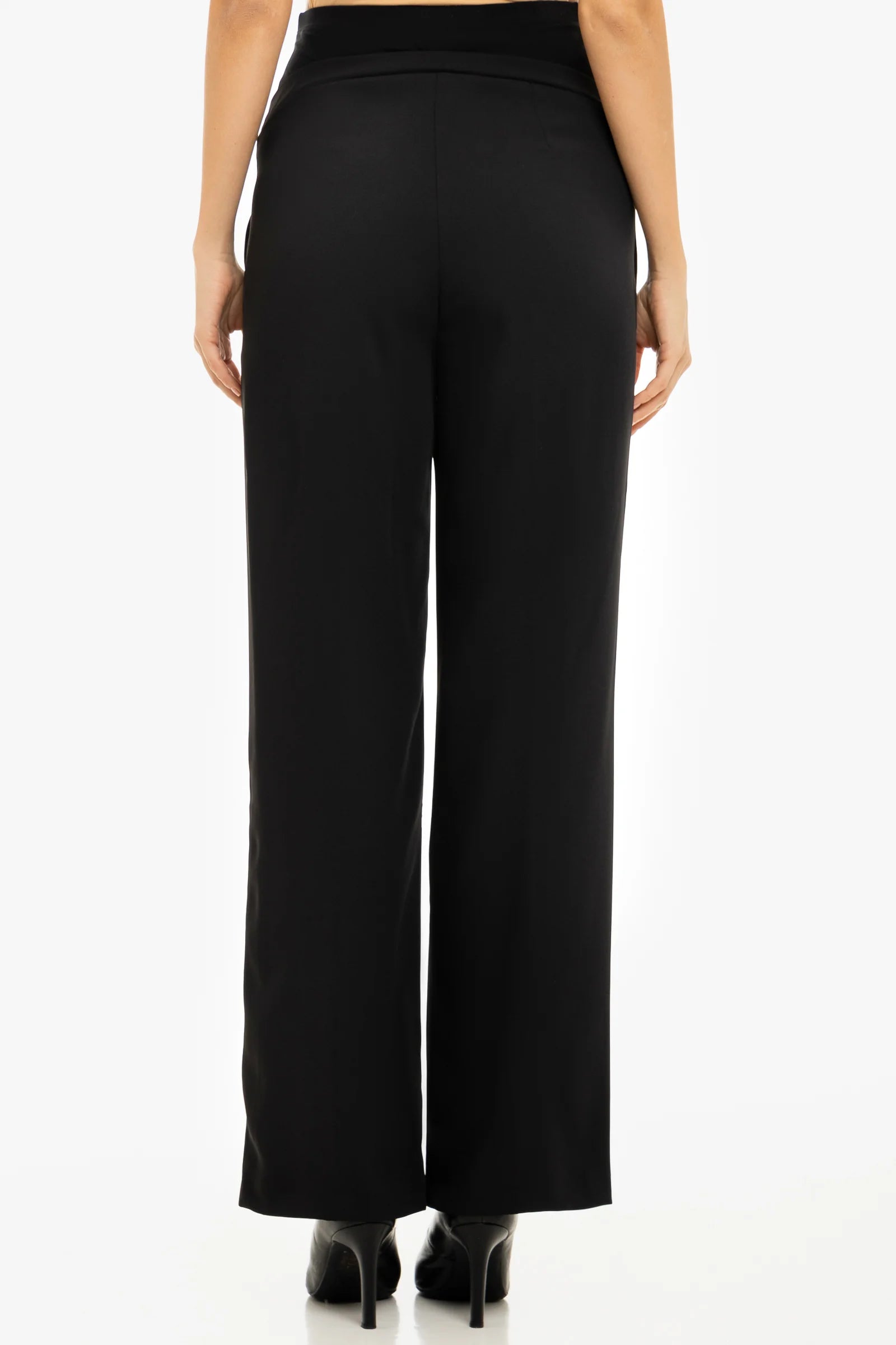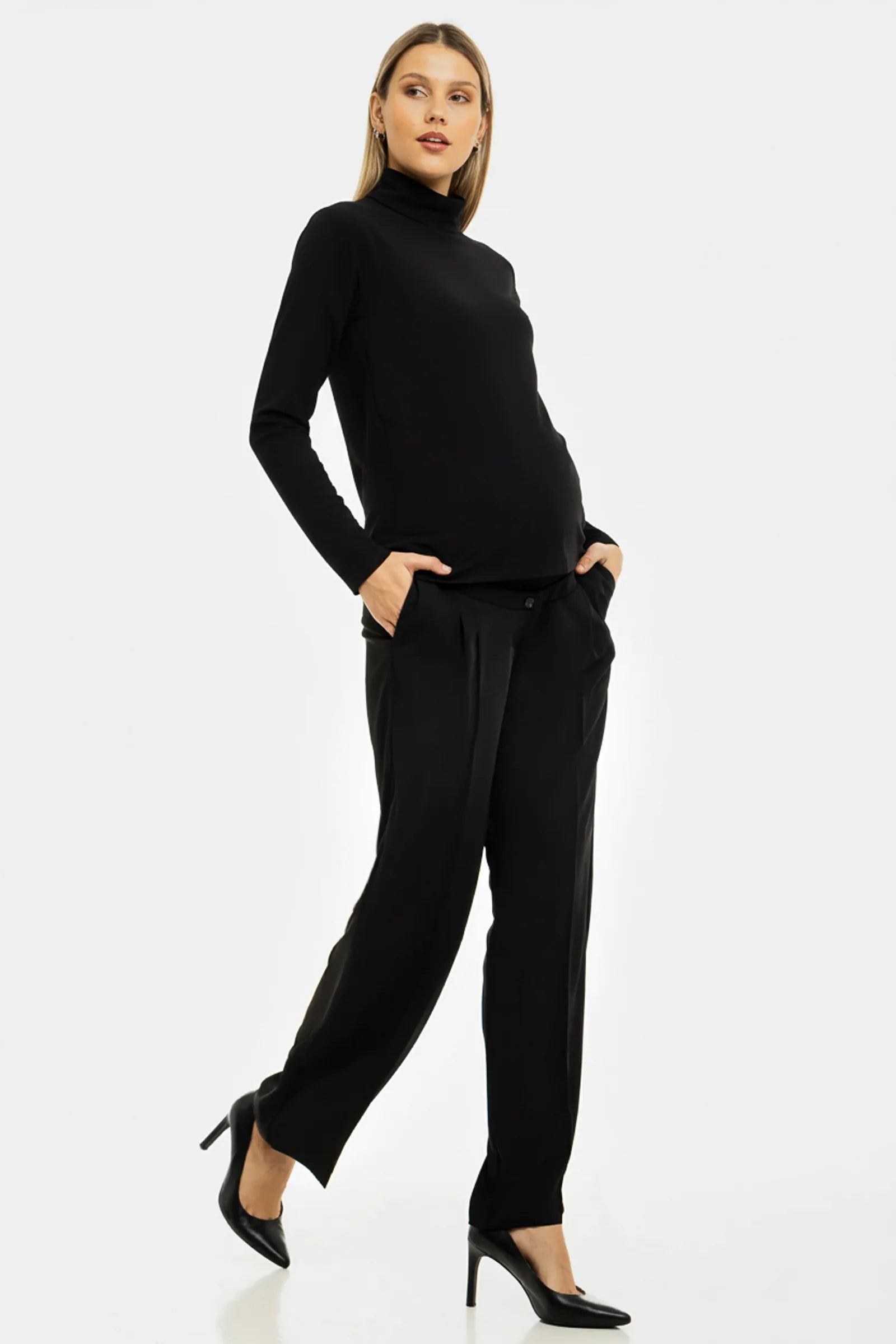 - Панталон за бременни от красиво падаща материя тип жоржет в черно