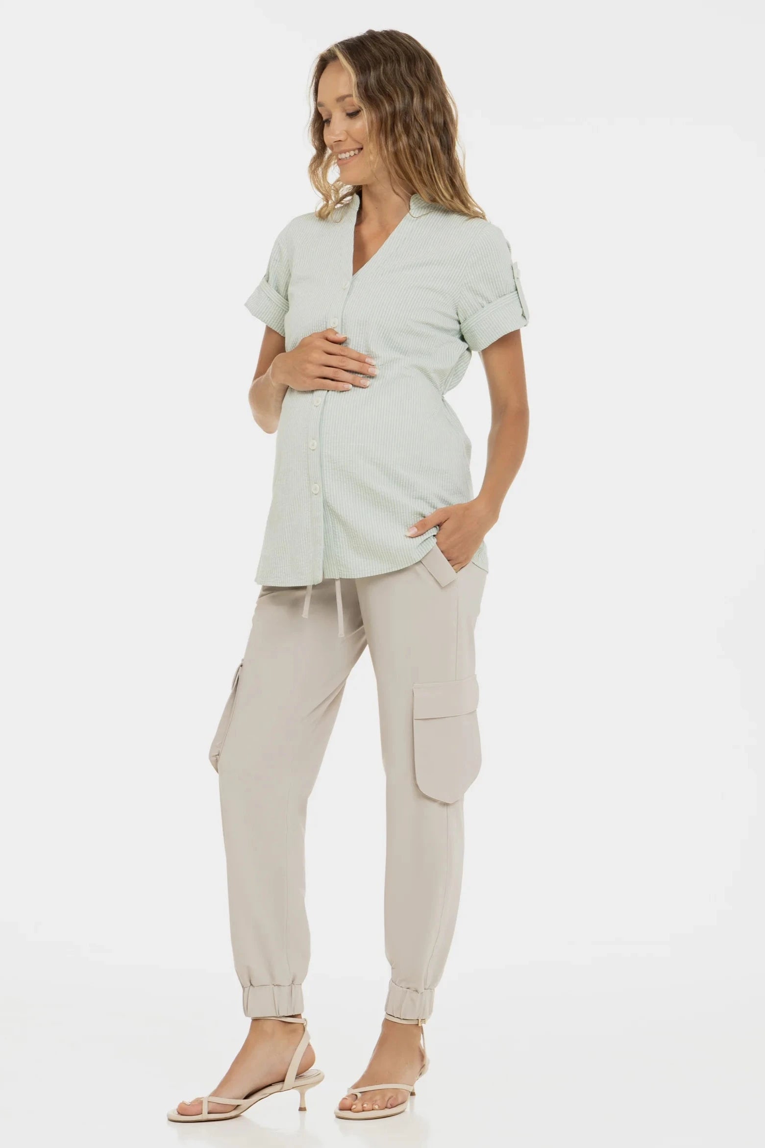 Бежов карго панталон за бременни