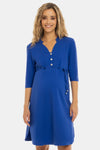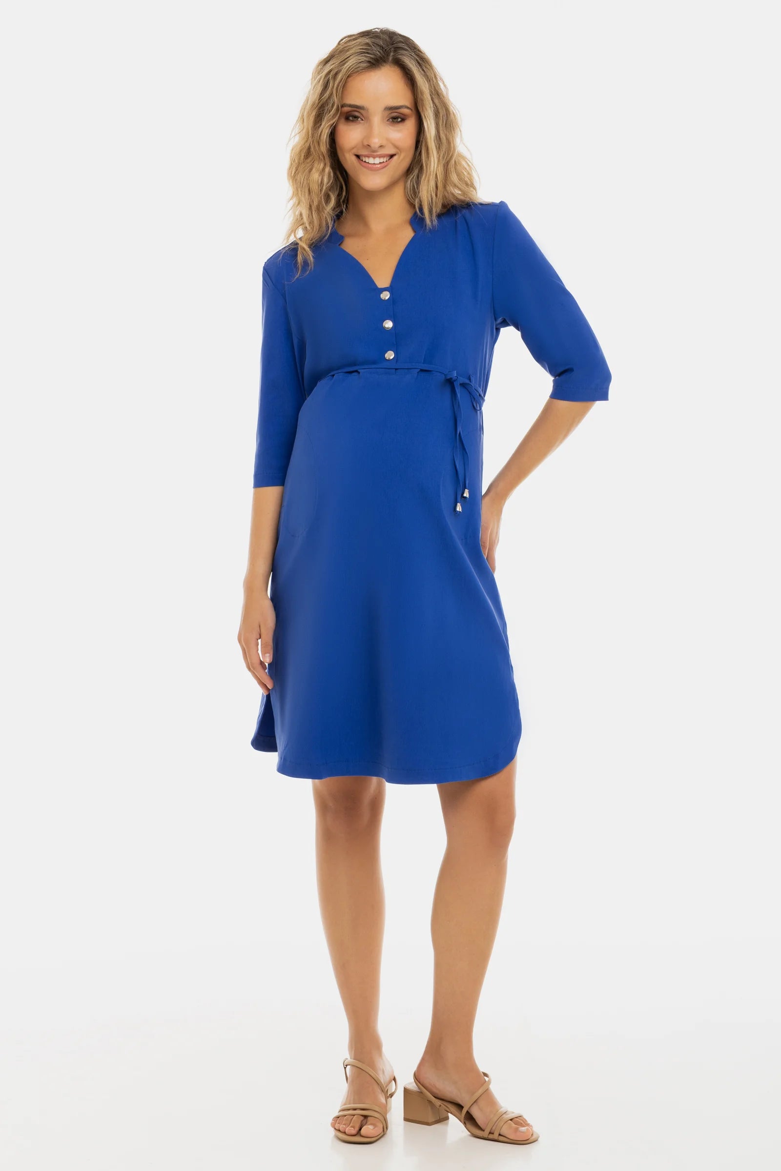 Еластична рокля за бременни и кърмещи с 3/4 ръкав - синя