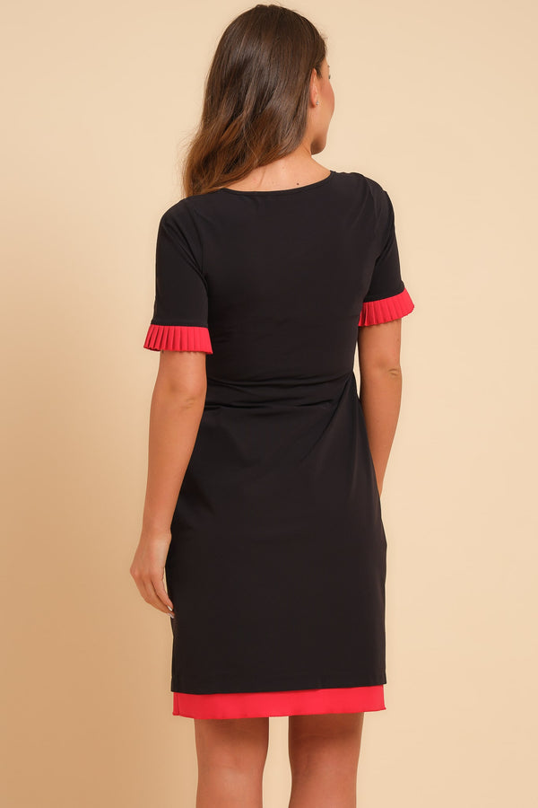 - Констрастен плисиран елемент на ръкавите и лента на подгъва