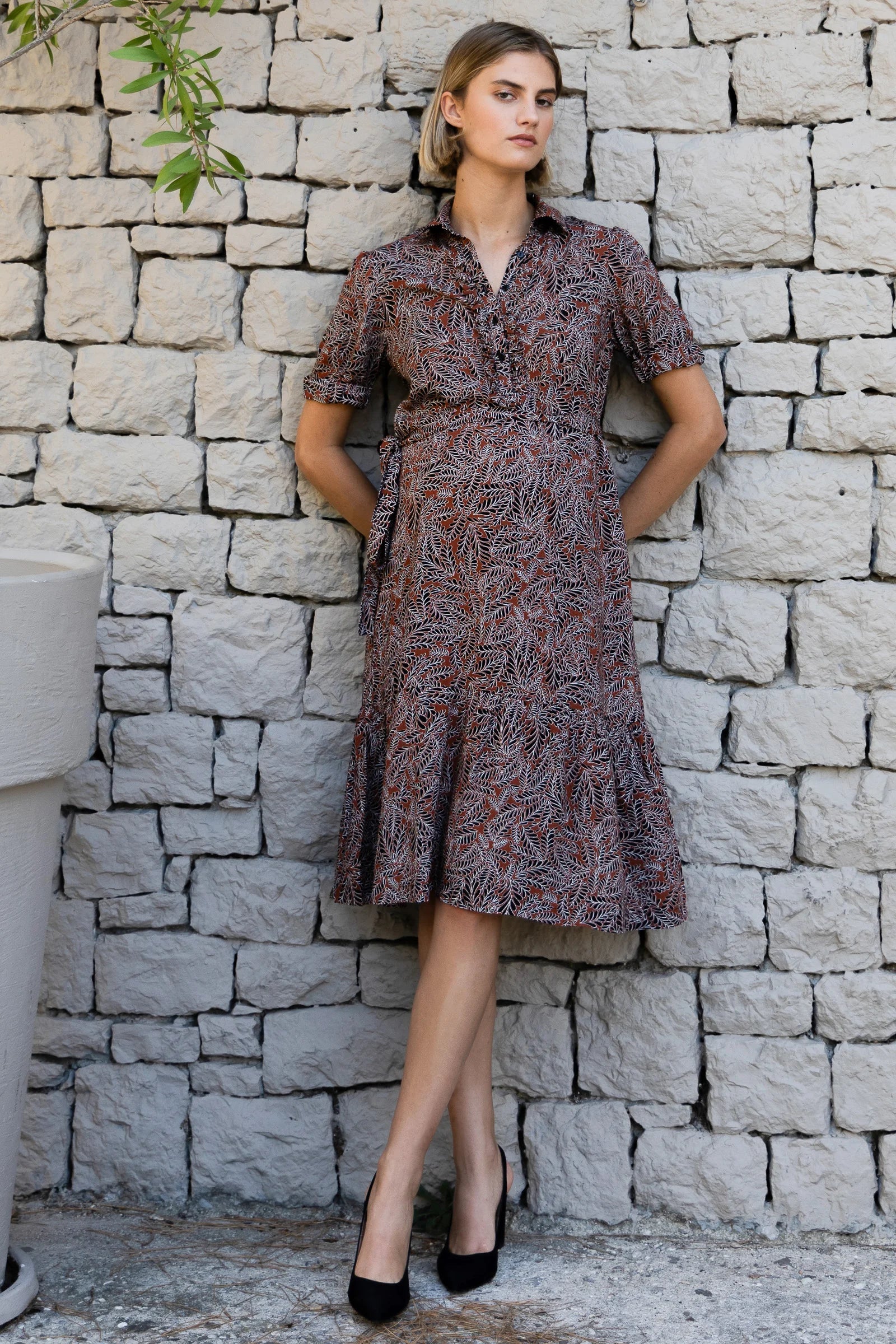 • Роклята е изработена от мека вискозна материя с десен