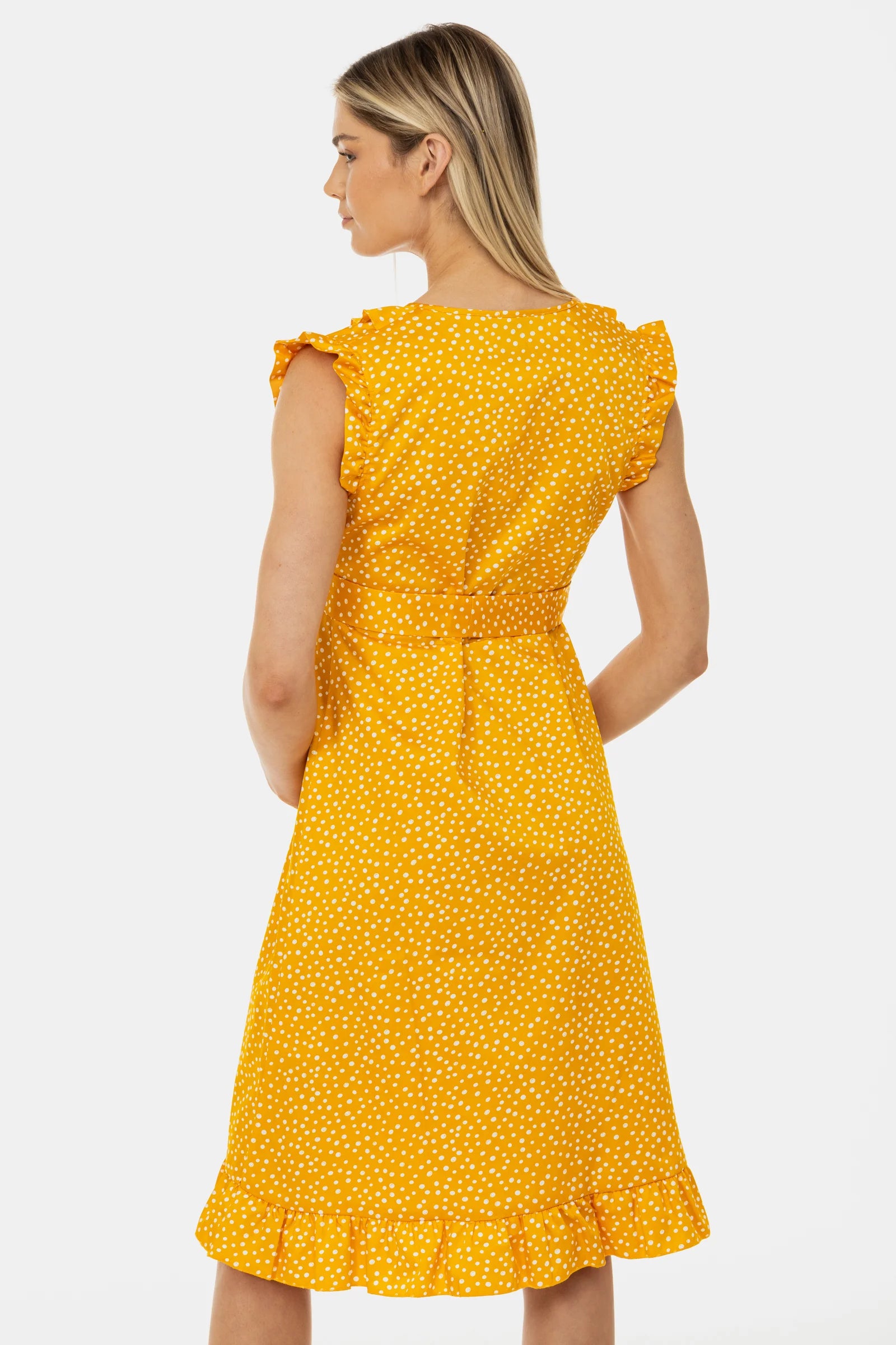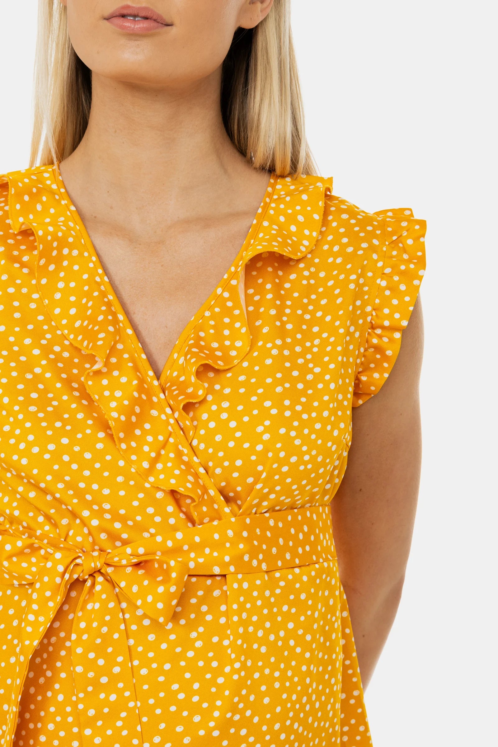 • Роклята е изработена от красиво падаща сатенена материя с десен на точки