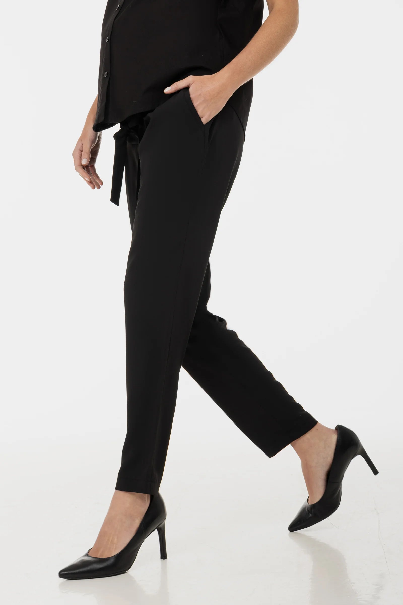 - Панталон за бременни от жоржетен плат в черно