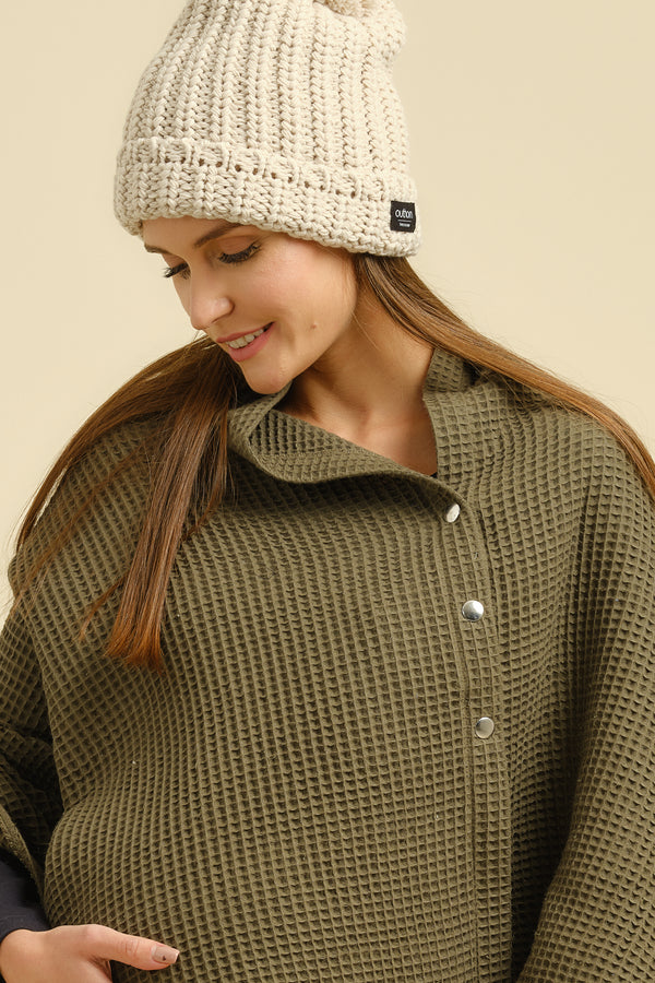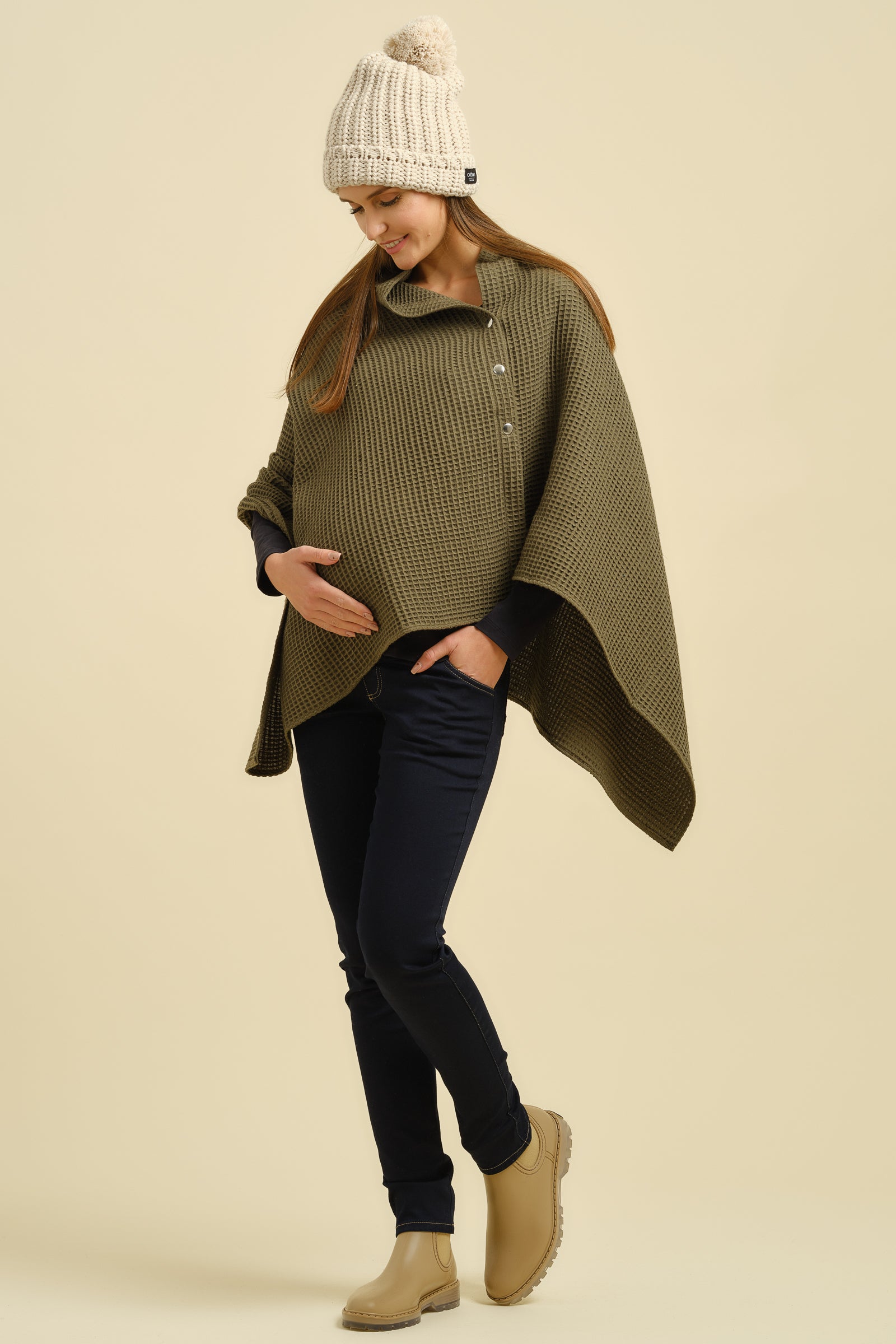 Изключително удобно за кърмене, наметалото се разкопчава от едната страна за по-лесен достъп.